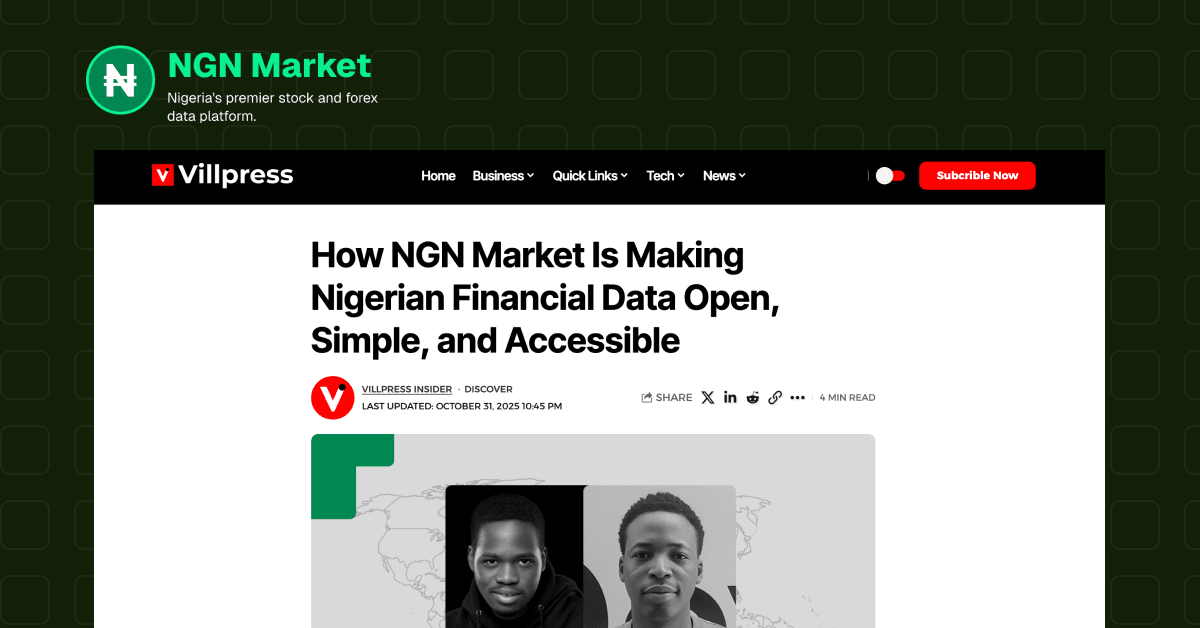 In the feature, the Villpress team highlighted how NGN Market is transforming access to real-time financial data in Nigeria. They explored our journey from struggling to find reliable market and forex information to building a platform that makes stock and currency data open, accurate, and accessible to everyone.